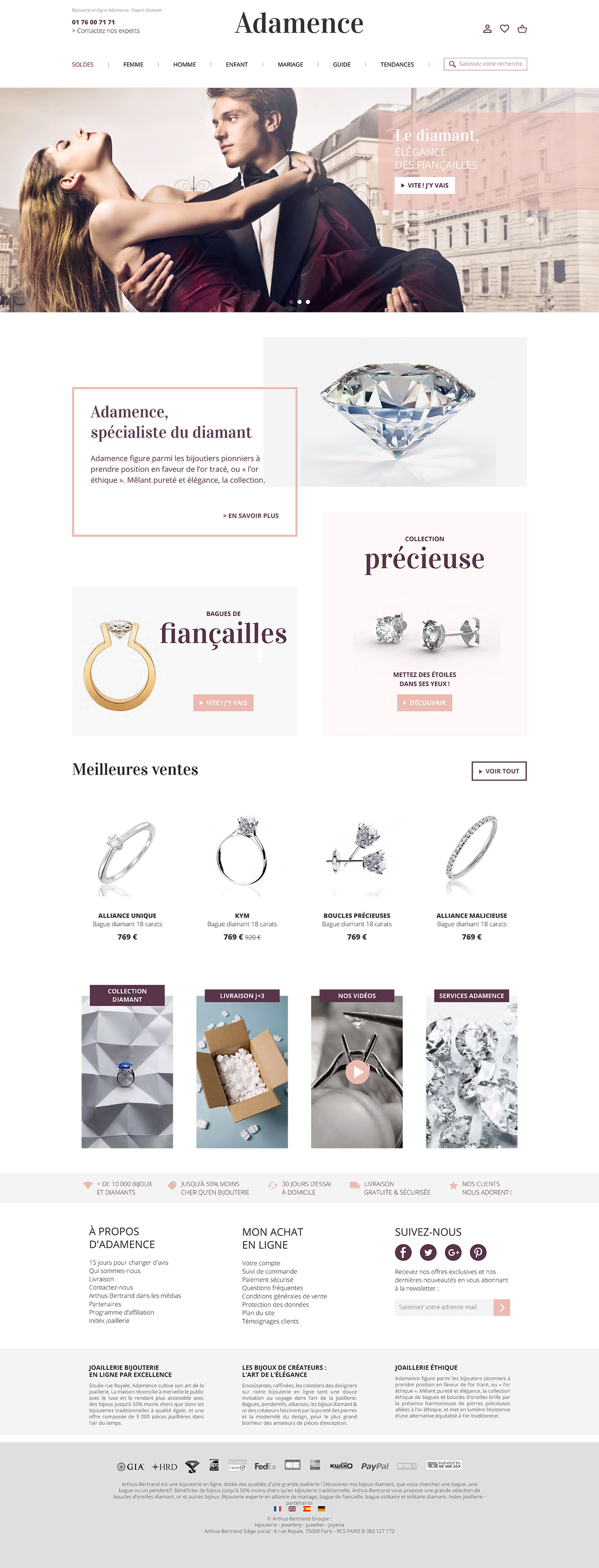 AdamenceIntégration Magento pour le site eCommerce Adamence, premier joailler en ligne de France.responsiveDev Front-endMagento