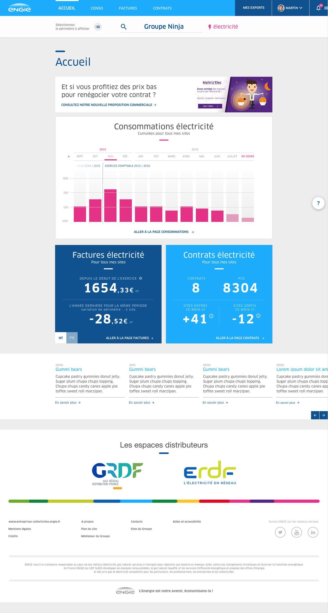 EngieIntégration responsive de l'espace client Engie pour le compte de l'agence parisienne User StudioUXFront-endBootStrapSassJS
